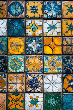 Exotic Moroccan tile background with intricate patterns, vibrant colors, and textured ceramic surfaces. The rich, cultural design adds an element of exotic beauty and craftsmanship to any scene