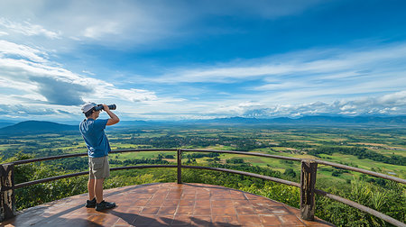 A photographer photographs a beautiful view from the Samet Nanghse observation deck in Thailand. Magnificent mountain landscape for lovers of landscape photography, tourists and travelers