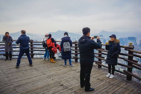 Seoul, South Korea - December 16, 2018: Park on Namsan Mountain in Seoul is very popular with residents and visitors of the capital of South Korea. Beautiful view from the top of mountain