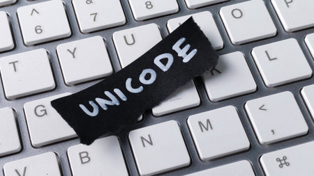Unicode Encoding Standard Concept with Black Paper Note on Computer Keyboard Keys for Programming and Global Communication