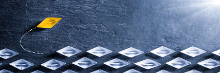 Leadership, unique or freedom concept. Yellow paper ship are different from others. Business for Innovative solution concepts