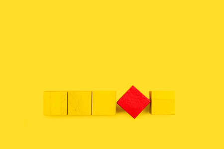 Human Resources concept. Rectangle wooden blocks with one different color. Picking up the most outstanding person from the pool of candidates for the job. Symbolism. Selective focus points.