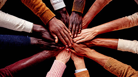 Linked together in life. Cropped shot of a diverse group of hands joined together.
