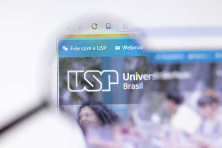 Los Angeles, California, USA - 7 March 2020: Universidade de Sao Paulo USP website homepage logo visible on display close-up, Illustrative Editorial.