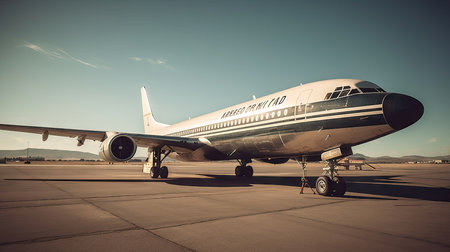 Airplane on the runway at airport. Vintage style toned picture