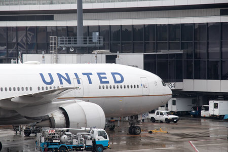Washington, D.C., USA - June 30, 2024: Airplane terminal for airline. United airline plane departure in airport. Airport terminal. Plane arrival, vacation. Departure and arrival at airport