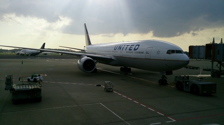 Kailua Kona, HI - FEBRUARY 19: A United Airlines 777 shows newest paint styling February 19, 2011 at the Keahole Airport in Kailua Kona, Hawaii.