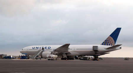Kailua Kona, HI, USA - February 19, 2011: A United Airlines 777 loading up at the
