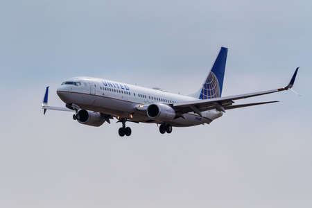 Boeing 737 operated by United landing at Denver International Airport, Colorado. United is the third largest airline in the world.