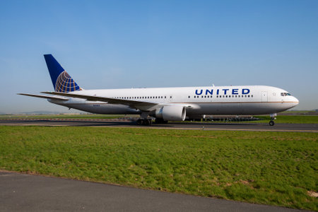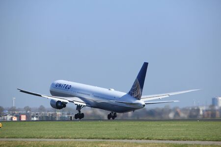 Amsterdam the Netherlands - April 2nd, 2017: N67058 United Airlines Boeing 767-400 takeoff from Polderbaan runway, Amsterdam Airport Schiphol