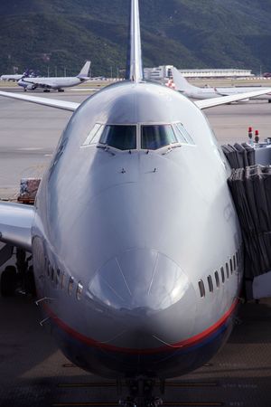 Commercial airplane at the gate at the airport