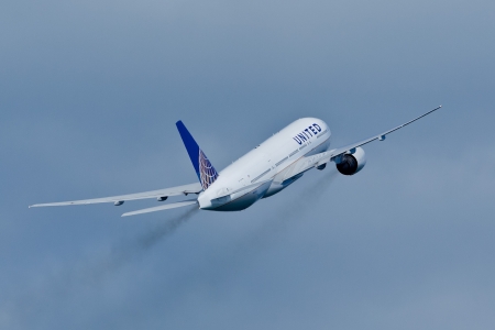 SAN FRANCISCO, CA - OCTOBER 5: United Airlines Boeing 777 (N212UA) demonstration during Fleet Week in San Francisco, CA on October 5, 2012.