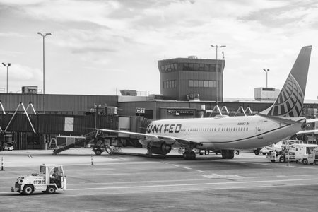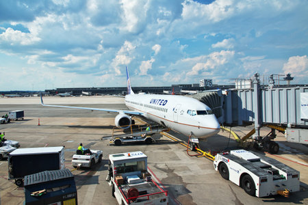 At newark airport, newark, NJ - December 31, 2016: United airlines airplane in the newark airport.