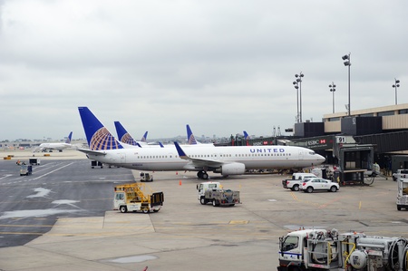 NEWARK, NJ - Oct 5: United Airlines plane at airport on October 5, 2011 in Newark, New Jersey. United Airlines merged with Continental in 2010 as now the world's largest airline.