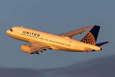 Las Vegas, Nevada, USA - May 9, 2013: United Airlines Airbus A319 airplane departing from McCarran International Airport in Las Vegas.