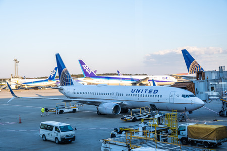 Narita, Japan - May 1,2017, United Airlines airplane located in Narita airport wait the passenger for departure