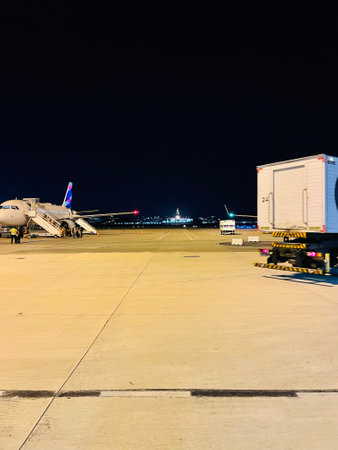 Airplane on the tarmac of the airport in the night.