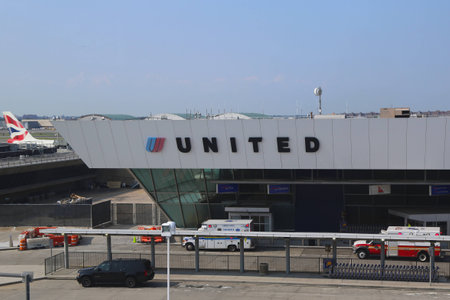 NEW YORK- JULY 22 United Airlines Terminal 7 at John F Kennedy International Airport in New York on July 22, 2014 JFK is one of the biggest airports in the world with 4 runways and 8 terminals