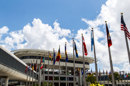 14 April Pan American Community Day symbol of unity peoples, voluntary together, community. flags of different countries festive atmosphere, values and cultural aspects, friendsgip different nation