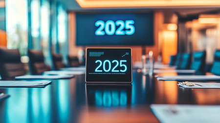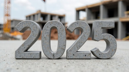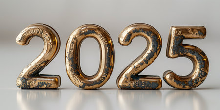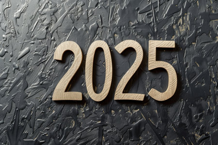 The striking numbers 2025 are prominently displayed in a textured gray finish against a minimalist background, evoking a sense of anticipation and new beginnings. This modern representation of the upcoming year captures the essence of change and hope, inviting viewers to reflect on future possibilities.