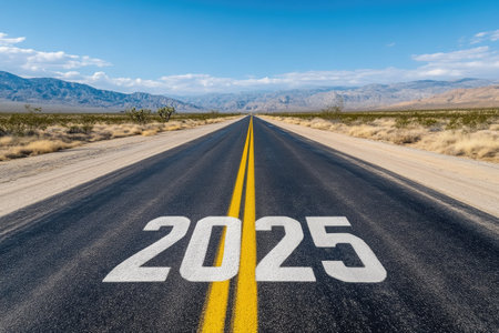 Lonely Highway Stretching into the Horizon with 2025 Signage