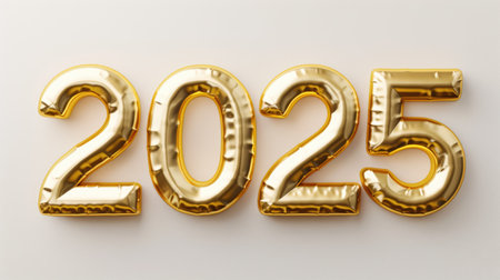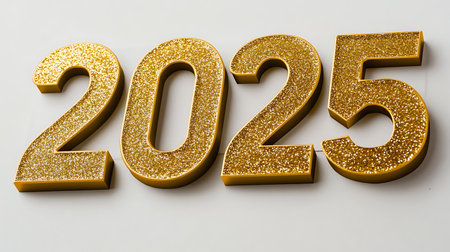 Golden glittery 2025 numbers isolated on a white background, perfect for Happy New Year celebrations and festive decorations.