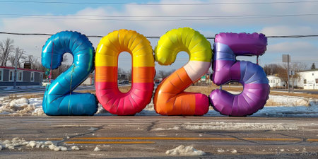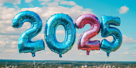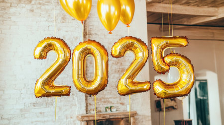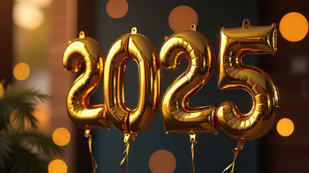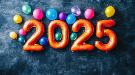 Brightly colored balloons arranged to spell 2025 adding a festive touch to New Year celebrations
