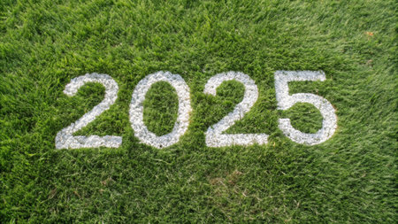 2025 in white paint on green grass: a symbol of growth and new beginnings.