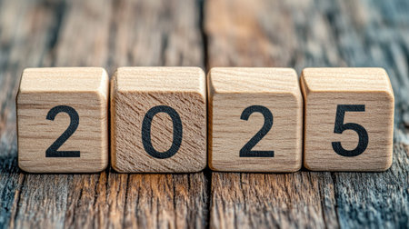 Wooden blocks spelling out the year 2025 with a stacked 6 on top Clear details and vibrant colors enhance visu...