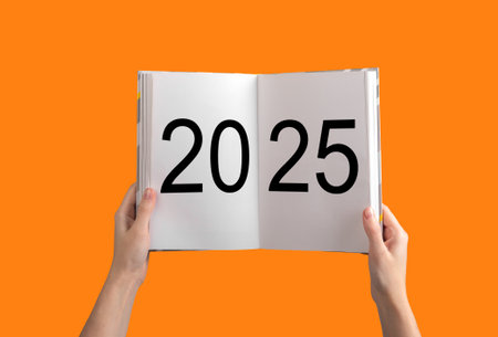 Simple wooden blocks display the year 2025 against a vibrant orange background, symbolizing new beginnings and the excitement of the future.