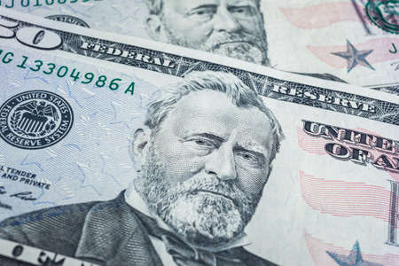 The fifty dollars banknote macro. Close up shor of the President Grant