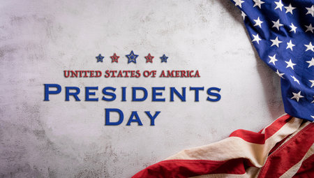 Happy presidents day concept with flag of the United States on old stone background.
