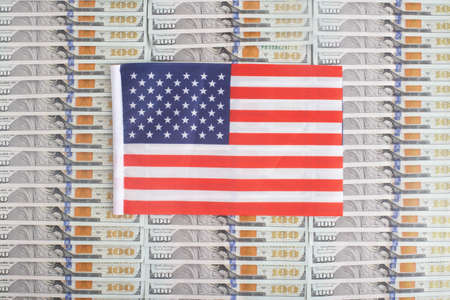 American flag on a background from dollar banknotes. Concept of the relationship of the American money in relation to the dollar, the country's economy, industry