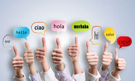 This image showcases a business environment where diverse languages are represented, emphasizing the importance of communication and cultural collaboration in the global market. Raster