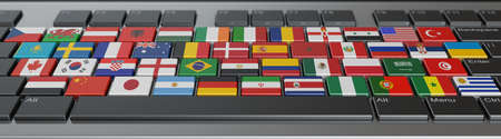 A person presenting the 3D render of various national flags - global communication concept