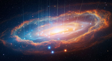 A breathtaking view of a vast cosmic galaxy with swirling colors and illuminating stars, showcasing the beauty and mystery of deep space.