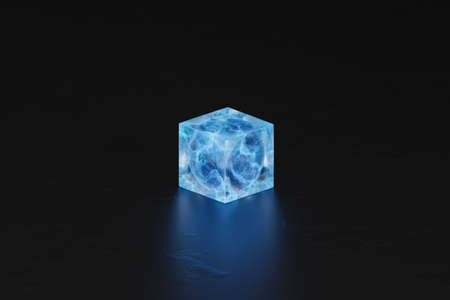 Abstract blue cube on black background, 3d illustration render