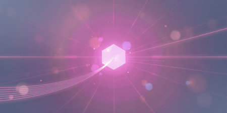 Abstract pink background with glowing hexagon