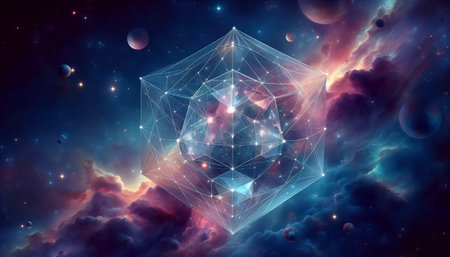 Polyhedrons in cosmic space, Ai generated image