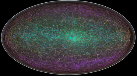 High-tech panoramic Earth sky map with real constellations, planetary nodes, and astrological rings Futuristic Education and Scientific Visualizations Space-Themed UI/UX Backgrounds for VR and Tech Brands