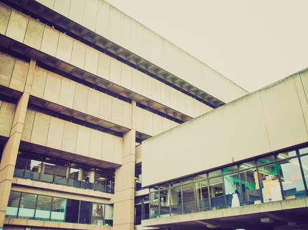 Vintage looking Birmingham Central Library, iconic brutalist concrete building, UK