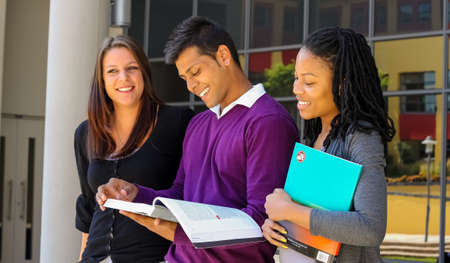 College students studying on university campus outdoor