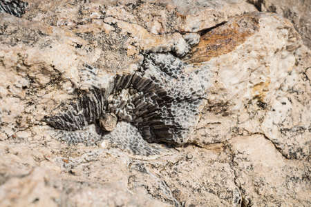 Imprint of an ancient mollusk on a rock. Crimea.