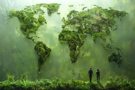World Map Green Planet Earth and Environment Day Theme AI Generated