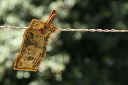dollars on a linen rope, the concept of money laundering.