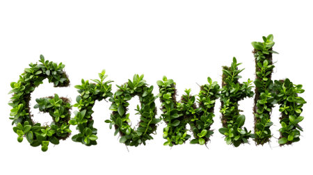The word Growth composed of green plants and upward arrows isolated on a transparent background