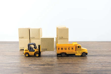 Mini forklift truck load cardboard boxes. Logistics and transportation management ideas and Industry business commercial concept