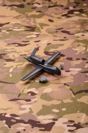 Camera in the head of an unmanned military drone close-up, modern military equipment