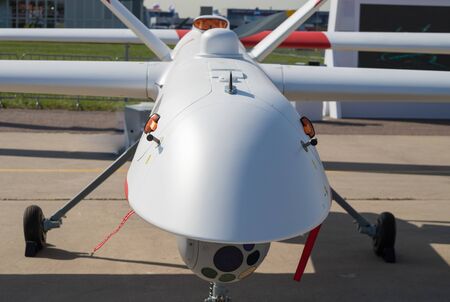 29 AUGUST 2019 MOSCOW, RUSSIA: An outdoors airplane exposition - military flying drone