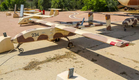 HATZERIM, ISRAEL - MAY 2, 2017: IAF IAI Scout Reconnaissance Drone on display at The Israeli Air Force Museum. The museum was established in 1977 and has been open to the public in 1991